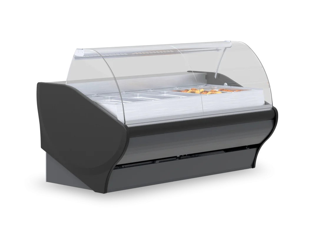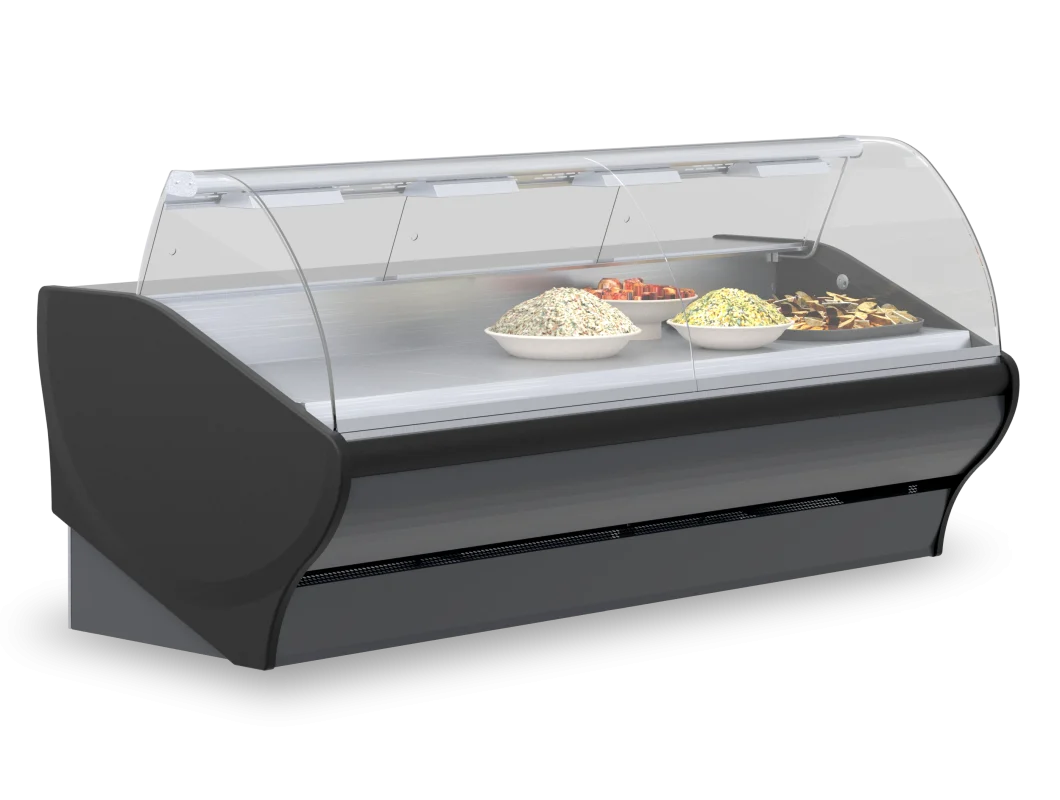 Opcja z niską szybą frontową, bez lampy i bez przysłonek nocnych, idealna do ekspozycji produktów w systemie samoobsługi.