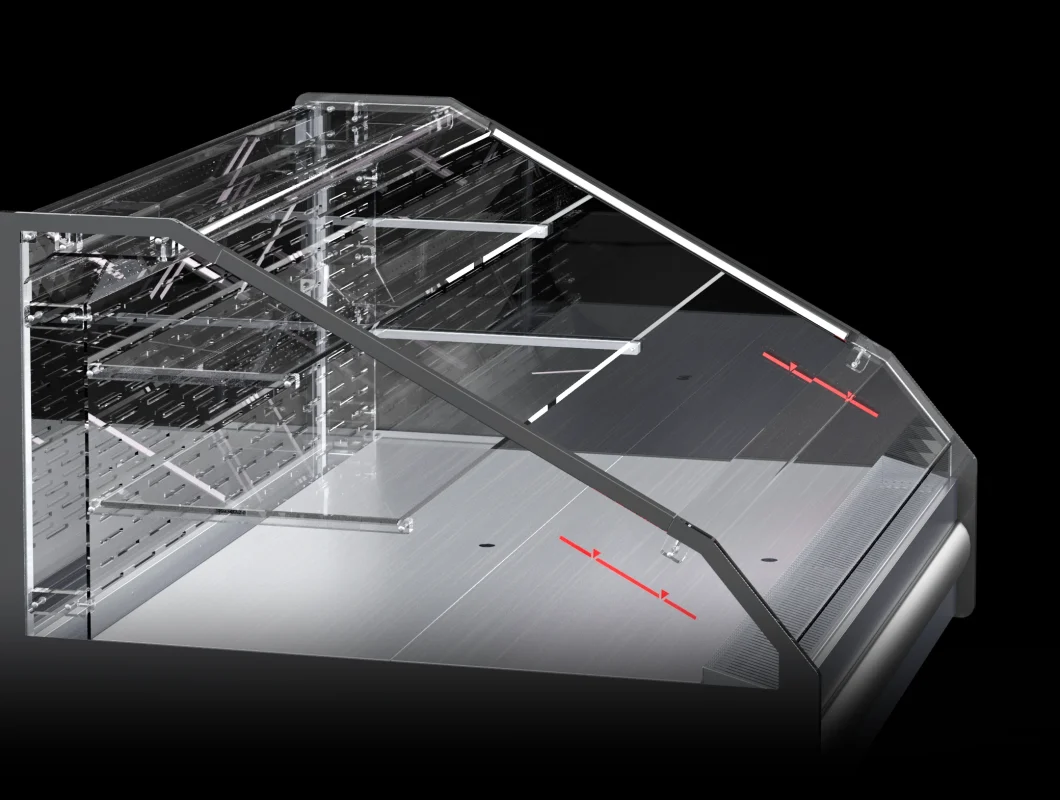 | Oświetlenie boczne wnętrza – LED (barwa do wyboru: biała, cukiernicza lub mięsna) |